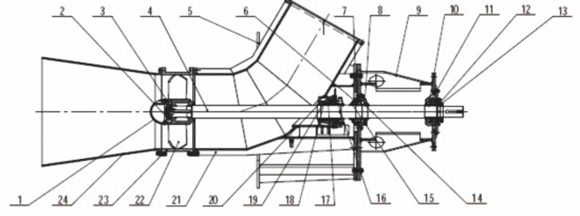 1-導(dao)流罩 2-葉輪(lun)鎖緊蓋 3-葉(yè)輪卡環 4-軸(zhóu) 5-泵支架 6-下(xia)軸承壓蓋(gài) 7-下🧑🏽🤝🧑🏻軸承下(xia)擋套 8-下軸(zhóu)承盤 9-軸承(cheng)支架 10-軸承(chéng)墊日 11-上🏃🏻♂️軸(zhóu)承⚽盒 12-軸承(cheng)墊⛱️圈 13-上軸(zhou)承⭕壓蓋 14-下(xià)軸承上擋(dǎng)目 15-下軸承(cheng)壓蓋 16-填料(liao)壓蓋組件(jiàn) 17-水封環 18-填(tián)料箱 19-填料(liào) 20-軸套 21-泵體(tǐ) 22-葉輪 23-短🈲節(jie) 24-吸入錐管(guǎn)